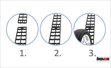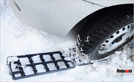 Использовать StopSlip очень просто: подложите по одной пластине под буксующее колесо таким образом, чтобы они надежно соприкасалась с колесом и дорогой. При необходимости, можно сцепить СтопСлип между собой, чтобы увеличить площадь сцепления и эффективнее преодолеть проблемный участок пути.