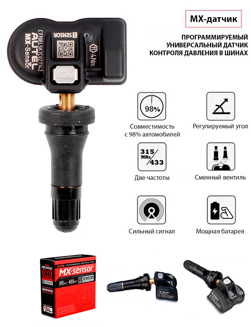 Программирование устройств осуществляется по беспроводному протоколу, что является одним из важных конструктивных преимуществ. Благодаря этому параметры работы датчиков можно быстро откорректировать и адаптировать их к изменившимся условиям эксплуатации. Программирование выполняется с помощью программного обеспечения от компании Autel, процесс сравнительно несложен и не занимает много времени. Приложение способно запрограммировать за один сеанс до 16 датчиков, данная возможность обеспечивается за счет высокой мощности передаваемого сигнала (она достигает 5-8 дБ/м). Программируются даже те приборы, которые ранее были установлены на колеса автомобиля.