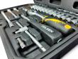 Набор инструментов универсальный Tolsen TT15138 предназначен для работ на станциях технического обслуживания, в автомастерских или в гараже. При изготовлении предметов, входящих в набор, использовались следующие материалы: сталь Cr-V, сталь S2, конструкционная сталь, хром, пластик и PP+TPR. Комплект из 46 предметов упакован в удобный кейс из PE-HD пластика, что позволяет взять набор в поездку.