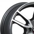 - Эффектное дизайнерское воплощение, в котором необычность рисунка органично совмещена с утонченностью и элегантностью. Каждая из пяти пар тонких лучей выполнена в виде оригинальной геометрической фигуры, слегка напоминающей вытянутый пятиугольник. Наружные стороны отполированы, остальная поверхность окрашена в темно-серебристый цвет. Автомобиль, оснащенный такими дисками, выглядит значительно дороже своей реальной цены.