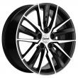 - Визуально легкий, модный дизайн. Он состоит из пятнадцати разных по толщине лучей, которые равномерно распределяют внешние нагрузки по всему ободу. В центральной части расположена фирменная вставка, а контрастное цветовое оформление, построенное на сочетании блестящей полировки и насыщенного черного цвета, придает колесам роскошный, яркий облик.