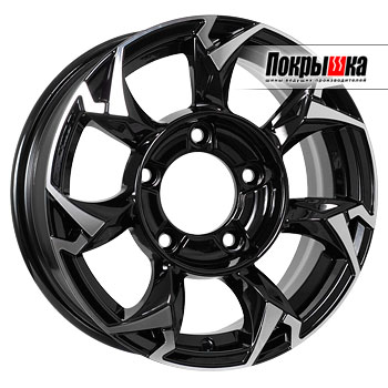 - Уникальный дизайн на основе семи нестандартно изогнутых опорных лучей. При этом цветовое оформление построено на сочетании черного лакокрасочного покрытия и сверкающей полировки. Такие колеса имеют агрессивный, динамичный вид и производят особенно сильное впечатление при движении автомобиля, а порядок расстановки опорных элементов способствует правильному распределению нагрузки по корпусу.