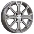 - Необычный, уникальный дизайн, благодаря которому диски обрели благородные, респектабельные черты. Рисунок составлен из восьми тонких лучей, половина которых являются Y-образными и чередуются с прямыми лучами. На каждом из них выполнена оригинальная продольная проточка. Центр немного утоплен, на нем расположена вставка с эмблемой торговой марки, а серебристый цвет дополняет образ дисков выраженным аристократическим акцентом.