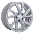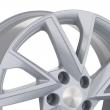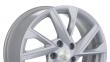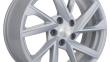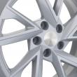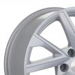 - Красивое дизайнерское исполнение. Рисунок сформирован из десяти умеренно широких опорных элементов, которые собраны попарно, причем в каждой паре один элемент является прямым, а второй в нижней части имеет асимметричное утолщение. Такой дизайн придает колесам элегантность, а дополнительными декоративными элементами являются круглая центральная вставка с фирменной эмблемой, а также серебристое лакокрасочное покрытие.