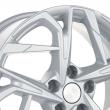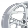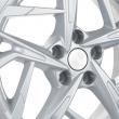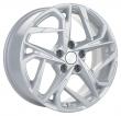- Интересный дизайн на основе изящно изогнутых элементов. Они формируют рисунок, напоминающий нечто среднее между снежинкой и орнаментом. В середине находится отполированная до блеска и украшенная фирменной надписью вставка. С таким дизайнерским рисунком особенно удачно смотрится лакокрасочное покрытие классического серебристого цвета, качество которого подтверждено испытаниями в соляном боксе.