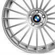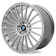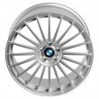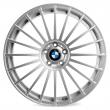 - Аристократический дизайн. Двадцать тонких, близко расставленных лучей выходят из компактной и эргономичной серединки, причем центральная площадка утоплена в виде «нажатой кнопки». В результате формируется визуально легкий, динамичный рисунок. Диски предлагаются в классическом серебристом цвете, и особенно эффектно смотрятся на движущемся автомобиле.