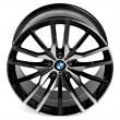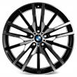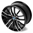 - Эксклюзивный дизайн, основу которого составляют 15 тонких лучей, собранных в группы по 3 штуки. В каждой группе крайние лучи слегка выгнуты, а центральный является идеально прямым. Очень выразительно исполнена центральная площадка, главным элементом которой является фирменная вставка BMW. Черное лакокрасочное покрытие создает эффектное контрастное сочетание с отполированными наружными поверхностями.