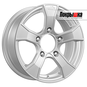 - Эффектный дизайн из пяти расширяющихся, красиво «надломанных» спиц, каждая из которых имеет изящно выступающие окантовки вдоль контуров. В центральной зоне оставлено крупное отверстие для ступичного гнезда. Универсальным является цветовое исполнение: классический серебристый цвет колес безупречно смотрится на любой машине.