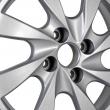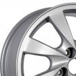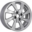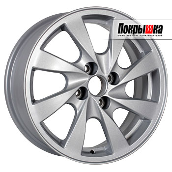 - Эффектный дизайн на основе восьми расширяющихся лучей, которые расставлены по ободу так, чтобы равномерно распределять нагрузку. Такое исполнение обретает особую выразительность благодаря серебристому цвету изделия. В центре предусмотрено место для фирменной вставки. Автомобиль с такими колесами будет смотреться значительно дороже своей фактической рыночной цены.