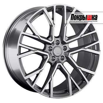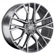 - Эффектное дизайнерское решение на основе десяти спаренных опорных элементов Y-образной формы. Каждый из них имеет асимметричное исполнение, но в парах лучи установлены зеркально друг к другу, поэтому пары получились симметричными. Такой рисунок обретает особую эффектность с учетом яркого контраста между антрацитовой матовой поверхностью и полированными лучами с ободом.