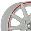 Диски LS Wheels LS-221 (WRL) предлагаются в благородном цветовом исполнении: белоснежное лакокрасочное покрытие эффектно сочетается с тонкой красной полосой вдоль окружности обода. Это придает им роскошный, неповторимый вид. Модель производится в больших типоразмерах, предназначенных преимущественно дял автомобилей гольф- и медиум-класса. Основные преимущества: