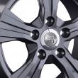 - Красивый дизайнерский рисунок. Он реализован на основе пяти массивных опорных элементов расширяющейся формы, каждый из которых декорирован продольной проточкой. В центре находится сверкающая фирменная вставка круглой формы, а вокруг нее равномерно распределены монтажные отверстия для болтов. С таким рисунком идеально смотрится темно-серебристый цвет, в который окрашен диск.