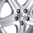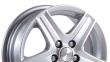 - Красивое дизайнерское решение, благодаря которому эти колеса смотрятся дороже своей фактической стоимости. Пять массивных, широких лучей расставлены в порядке звезды и имеют продольные выступы с углублениями. Центральная площадка имеет фирменную вставку, содержащую логотип бренда. С учетом глянцево-серебристого декоративного покрытия диски выглядят дороже своей стоимости.