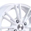 - Выразительное, яркое, аристократичное дизайнерское исполнение. Восемь спаренных лучей выходят из сравнительно крупной центральной площадки и равномерно расставлены по ободу. С учетом белоснежно-глянцевого цвета и красивой, отполированной до блеска центральной вставки с заводским логотипом диски выглядят дороже фактической цены.