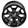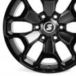- Невероятно красивый дизайн на основе шести массивных расширяющихся спиц. В нижней части они раздваиваются и имеют оригинальное соединение друг с другом в виде волнообразной линии, благодаря чему рисунок выглядит как цельный дизайнерский элемент. Центральная площадка утоплена относительно наружной плоскости, на нее помещена круглая вставка с фирменным логотипом производителя, а насыщенный черный цвет дополнительно подчеркивает респектабельность модели.