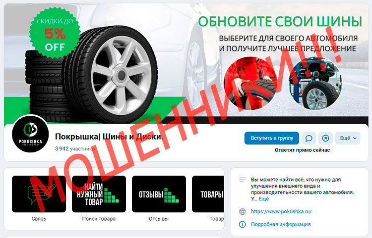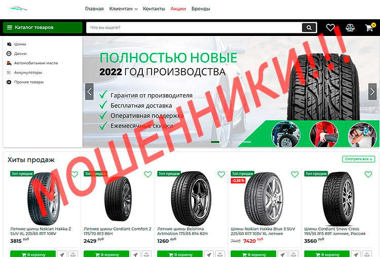 Уважаемые клиенты! Просим вас обратить внимание — в сети появился мошеннический сайт www-pokrishka.com, который предлагает купить шины по ценам на 20-40% ниже рыночных. После получения денег мошенники перестают выходить на связь.