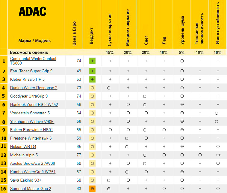 Испытания были достаточно масштабными: в них участвовало 16 моделей нешипованной зимней резины. Результаты удивили: лишь три модели зарекомендовали себя на высоком уровне. Причем в числе шин, показавших слабые результаты, присутствует продукция всемирно известных брендов. Поэтому эксперты ADAC дают ценный совет: при выборе зимней авторезины учитывайте условия езды. Одни колеса лучше ведут себя на снегу, другие — на влажном покрытии, третьи — на сухих и регулярно очищаемых от снега трассах.