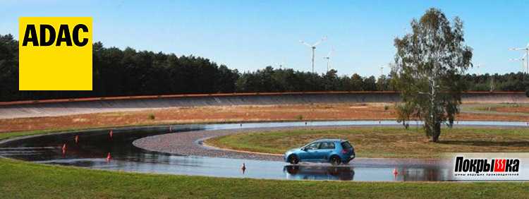 - боковая устойчивость при езде по кругу, покрытому водой, на максимально возможной скорости.