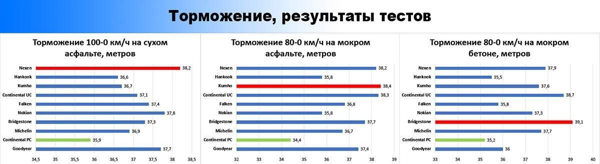 Кроме вышеупомянутых брендов, в десятку лидеров вошли также шины от Falken, Nokian Tyres, Nexen, Hankook и Kumho.