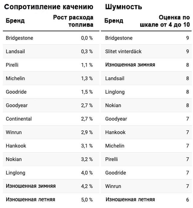 Самый высокий уровень акустического комфорта был зафиксирован у комплекта от Bridgestone. Благодаря мягкому компаунду малошумной оказалась также изношенная зимняя шина. Самой шумной оказалась подержанная летняя авторезина.