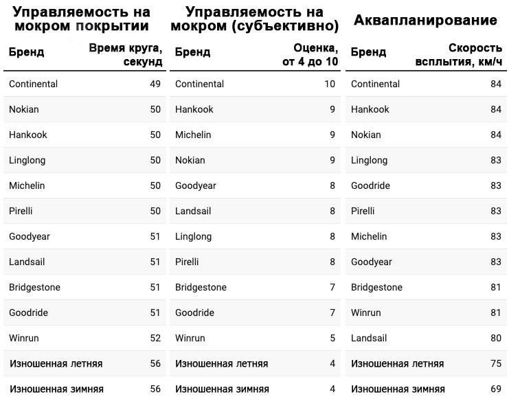 Что касается победителей номинации, то ими с одинаковым результатом 84 км/ч стали шины Continental, Hankook и Nokian.