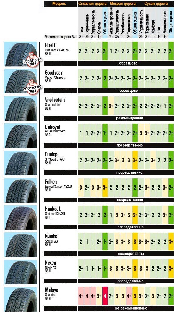 Таким образом, хорошая всесезонная резина должна обеспечивать безопасное движение и управляемость на снегу, а также демонстрировать высокую эффективность торможения на летних дорогах.