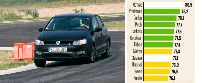 Лучший результат, как и предполагалось перед началом заездов, показали летние шины. С небольшим отставанием расположились модели от Pirelli и Uniroyal.