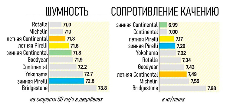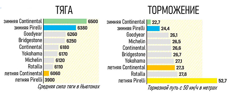 В тестах на сопротивление качению победителем были признаны всесезонные шины от Continental. Если сравнивать их с комплектом от Bridgestone, то расход топлива у них меньше на 3%.