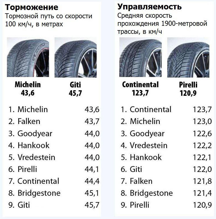 На примере победителя общего рейтинга — шин Bridgestone Blizzak LM005 стало очевидно, что высокий коэффициент сцепления с мокрым дорожным покрытием вполне совместим с низким сопротивлением качению, а с учетом стоимости (143 евро за шину) данная модель является наглядным примером лучшего сочетания цены и качества.