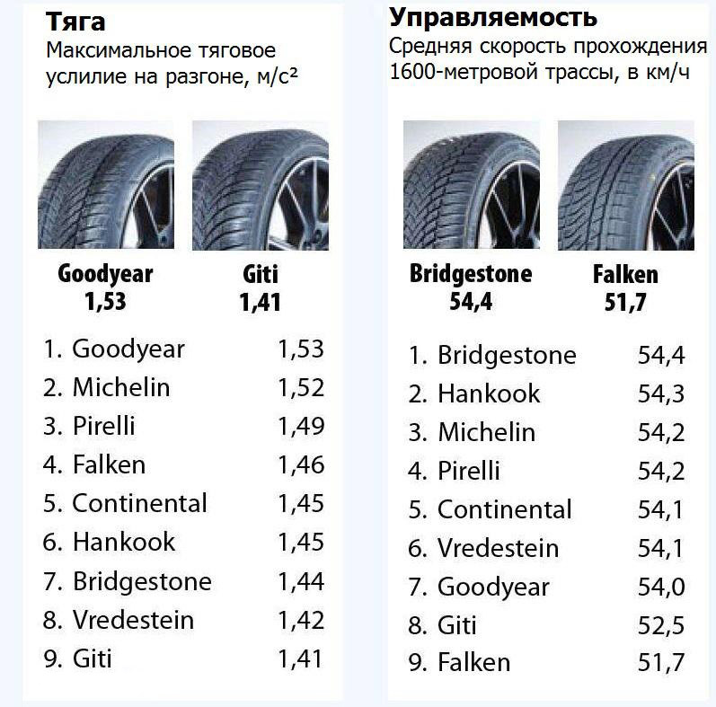 У моделей Eurowinter HS02 Pro от Falken и GitiWinter W2 от Giti отмечено слабое взаимодействие со снежным покрытием, при этом шины Falken значительно уступили конкурентам по управляемости.