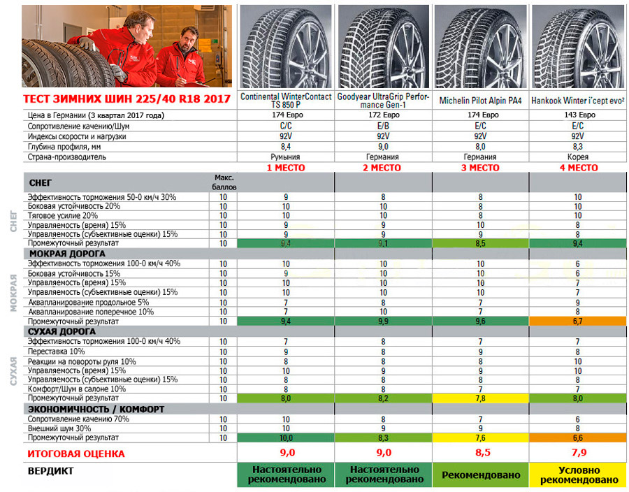 Опережая события, отметим, что первые места с оптимистичным выводом «настоятельно рекомендовано» получили модели WinterContact TS850 P и UltraGrip Performance Gen-1 соответственно от Continental и Goodyear. Эти шины, а также Pilot Alpin PA4 производства Michelin следует выбирать тем, кто стремится выжать из автомобиля максимум независимо от состояния зимних дорог.