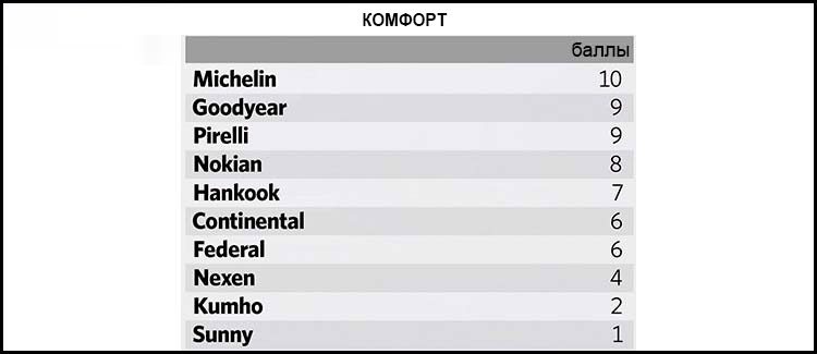Самой шумной оказалась модель от Sunny, а минимальный уровень ездового комфорта — у покрышек Kumho.