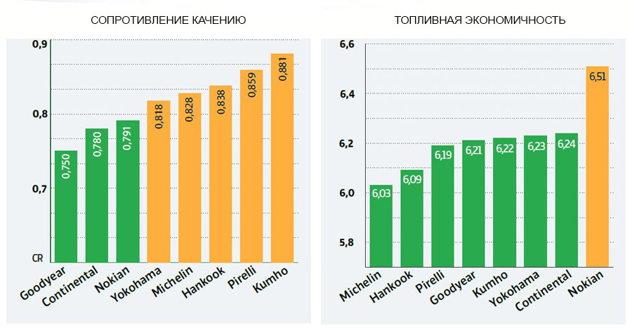 Чтобы определить уровень сопротивления качению, эксперты Vi Bilägare воспользовались специальным динамометрическим стендом. Лучший результат в данном испытании был зафиксирован у покрышек Goodyear. На последнем месте оказался комплект от Kumho, чуть лучшие выступили колеса от Pirelli.