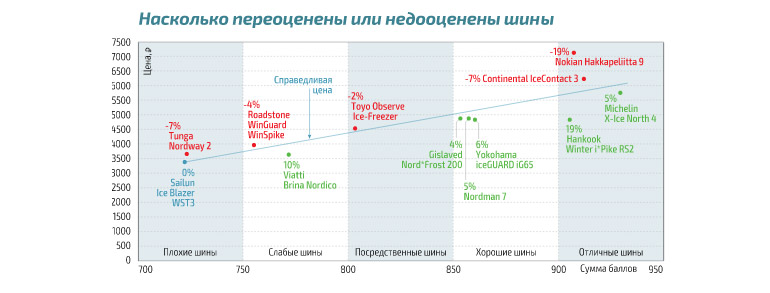 Среди «бюджетников» самой выгодной покупкой будут шины Viatti Brina Nordico, позволяющие сэкономить относительно справедливой цены до 10%. Покупая шины Roadstone WinGuard WinSpike и Tunga Nordway 2, придется переплатить от 4 до 7%. Цена шин Sailun Ice Blazer WST3 совпадает со справедливой.
