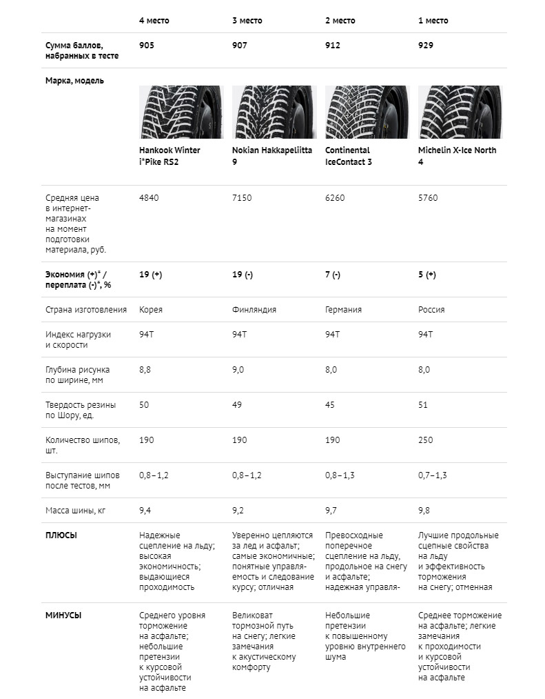- 1 место — Michelin X-Ice North 4 205/55 R16