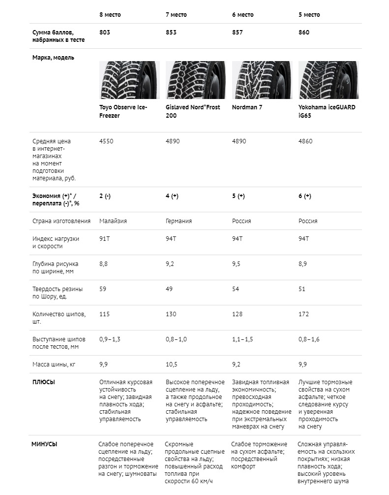 Не поднявшись выше группы «Слабые шины», «бюджетники» не смогли потягаться даже со среднеценовыми коллегами. На десятой строчке — шины Roadstone WinGuard WinSpike (755 баллов). Скромные результаты во всех номинациях. Позволят ездить аккуратно, без фанатизма и резких маневров. На скользких покрытиях допустимы только для автомобилей с постоянно включенными системами контроля.
