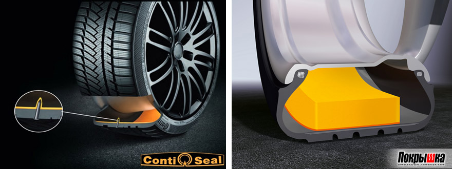 Сделать шину неуязвимой к проколам позволила технология ContiSeal, подразумевающая нанесение особого вязкого состава на внутреннюю поверхность покрышки. Он затягивает все отверстия диаметром до 5 мм даже в том случае, когда причина повреждения (шуруп, гвоздь и т. п.) выпадает из резины. Это избавляет от необходимости немедленно менять колесо и позволяет безопасно доехать к месту стоянки.