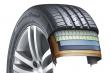 - Специальная резиновая смесь. Она создана на основе инновационной бутадиен-стирол-полимерной формулы, являющейся запатентованной разработкой Hankook. Добавление инновационного стирольного полимера повышает сцепление с влажными покрытиями, силика препятствуют быстрому износу. Технология холодной вулканизации способствует формированию прочных межмолекулярных связей, что повышает устойчивость к разрывам.