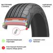 - Инновационная конструкция каркаса. В плечевых секциях имеется расширенный брекерный слой, который не только повышает прочностные характеристики, но и препятствует распространению шума.