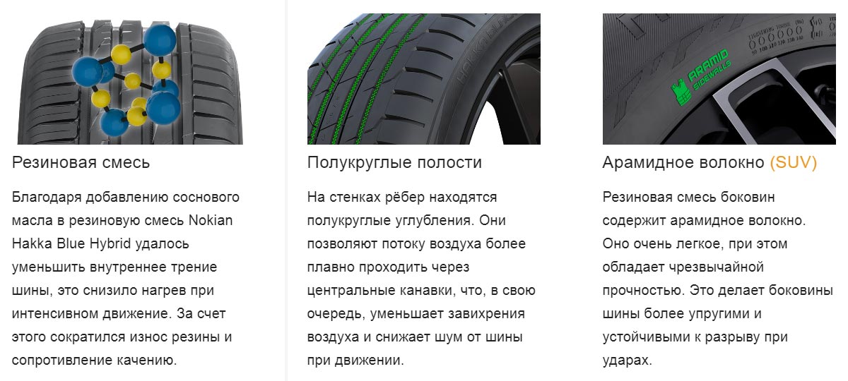 - Инновационная резиновая смесь, полученная в рамках концепции Hakka Blue Hybrid. Она произведена с добавлением масла сосны, что повысило стойкость к нагреву и износу, а также снизило сопротивление качению.